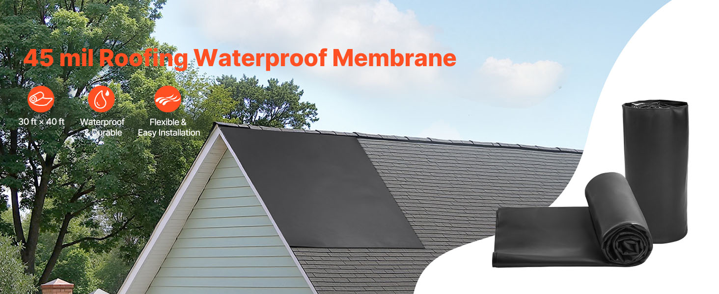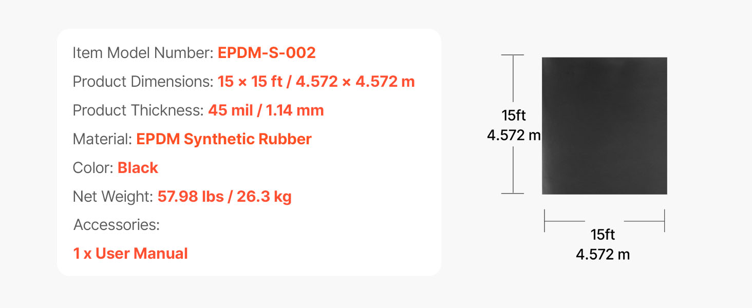Epdm strešná guma 15×15 ft, 45 mil, flexibilná, odolná, pre strechy