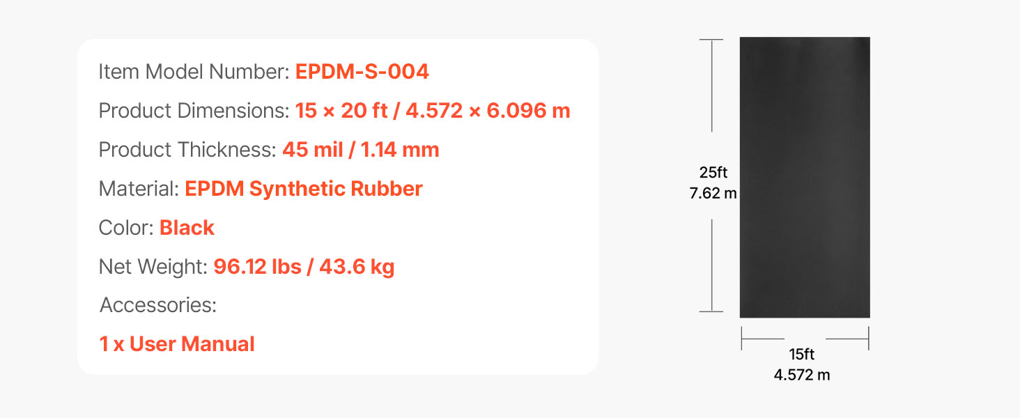 Gumená epdm krytina 45 mil, 15×25 ft, strešná podložka pre karavany