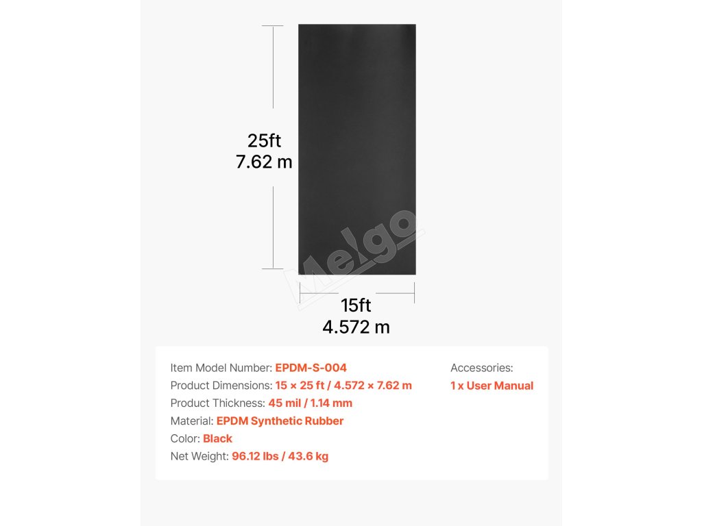 Gumená epdm krytina 45 mil, 15×25 ft, strešná podložka pre karavany