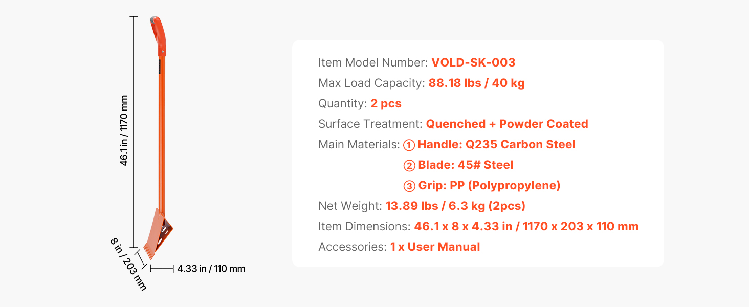Tento ľahký nástroj na odstraňovanie šindľov má ergonomickú rukoväť z PP, ktorá zaručuje pohodlné používanie bez únavy. Čepeľ s šírkou 8 palcov je vyrobená z tepelne upravenej ocele 45# a unesie až 88,18 libier. Ideálny na odstraňovanie asfaltových, drevených a kompozitných šindľov pri demolácii strechy.