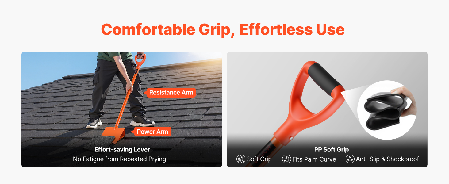 Využitím princípu páky táto lopata na strechy optimalizuje dĺžku ramena odporu a ramena sily pre bez námahu prevádzku. Rukoväť s mäkkým PP povrchom zaisťuje bezpečný, nešmykľavý úchop a zároveň znižuje vibrácie, čím poskytuje pohodlie pri dlhých úlohách.