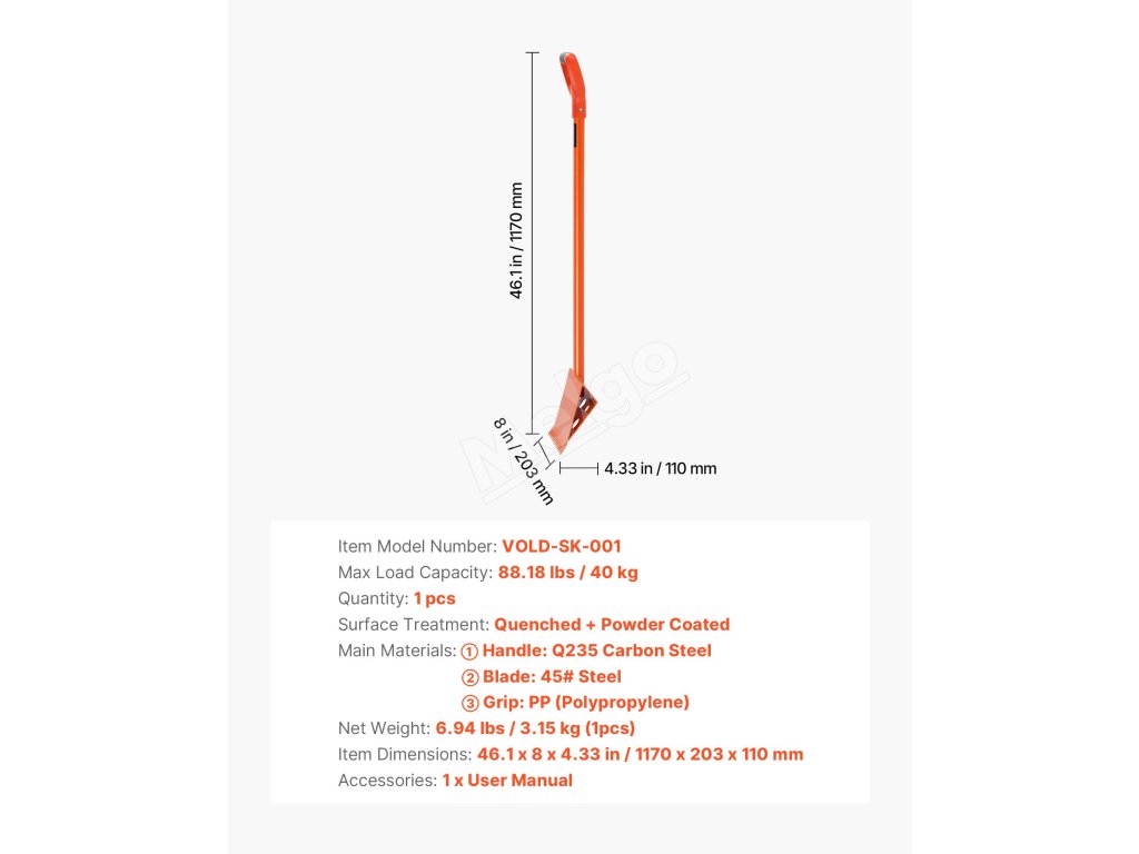 Tento ľahký nástroj na odstraňovanie šindľov je vybavený ergonomickou rukoväťou z PP, ktorá zaručuje pohodlné používanie bez únavy. Čepeľ s šírkou 8 palcov je vyrobená z tepelne spracovanej ocele 45# a unesie až 88,18 libier. Ideálny na odstraňovanie asfaltových, drevených a kompozitných šindľov pri demolácii strechy.