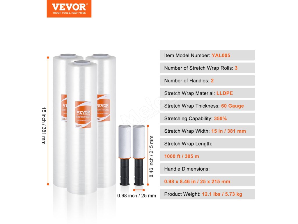 | Dĺžka strečovej fólie | 1000 ft/305 m |