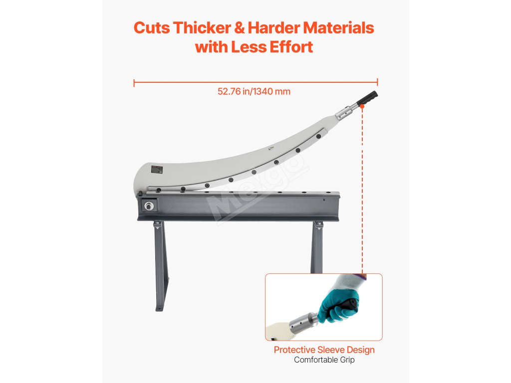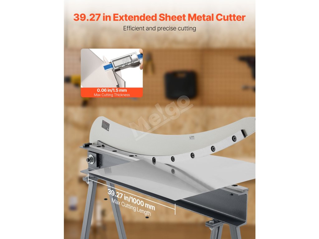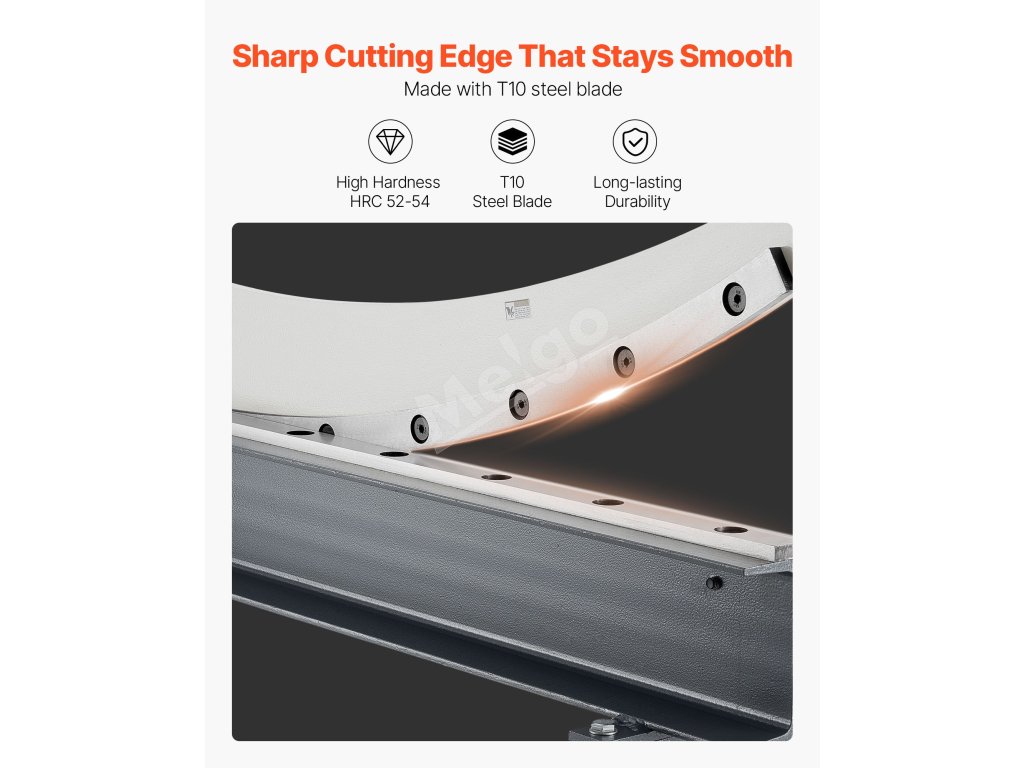 Tieto nožnice na plech sú ideálne na strihanie hliníka, nehrdzavejúcej ocele a nízkouhlíkovej ocele. Je vybavená nožmi z ocele T10 a kruhovým ostrím s maximálnou dĺžkou strihu 39,27 palca, hrúbkou 0,06 palca a kapacitou na kruhovú oceľ 0,06 palca. Medzera <0,07 mm zabezpečuje presné rezy bez otrepov.