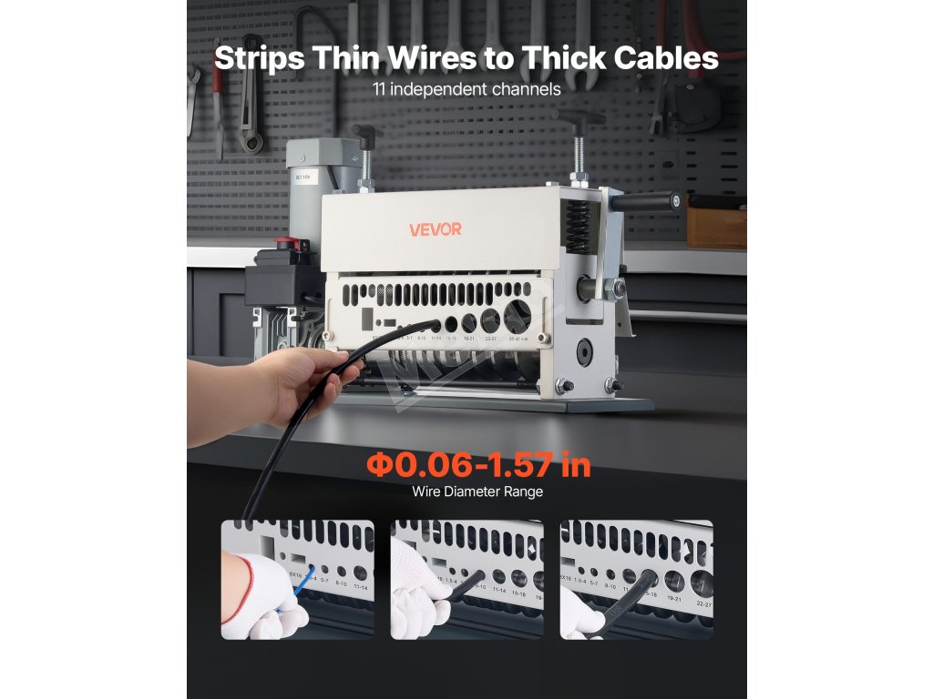 Tento stroj na odizolovanie drôtov je vhodný pre káble s priemerom 1,5-40 mm (Φ0,06-1,57 palca) a je vybavený 11 posuvnými kanálmi na rýchle prispôsobenie drôtov a presné odizolovanie. Podporuje elektrickú aj manuálnu prevádzku, ľahko sa používa a je vhodný pre začiatočníkov. Odolná čepeľ zaručuje dlhodobý výkon.