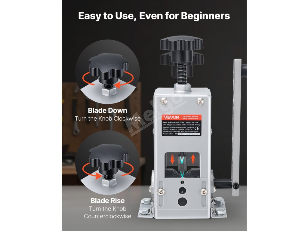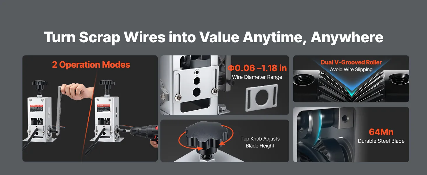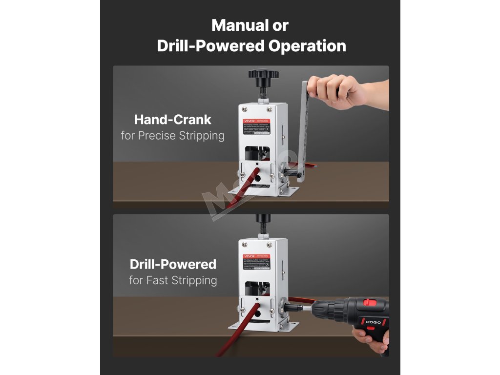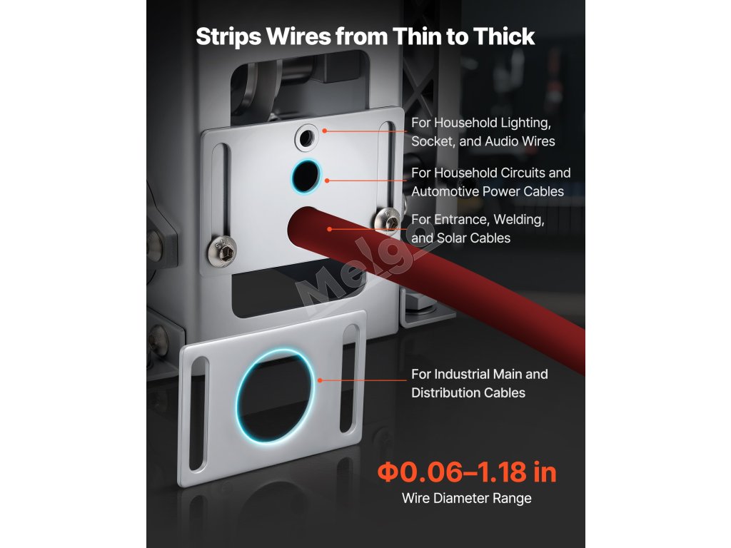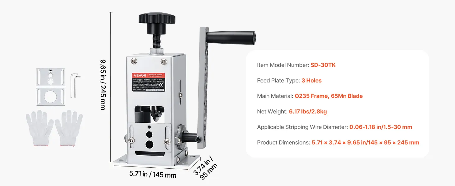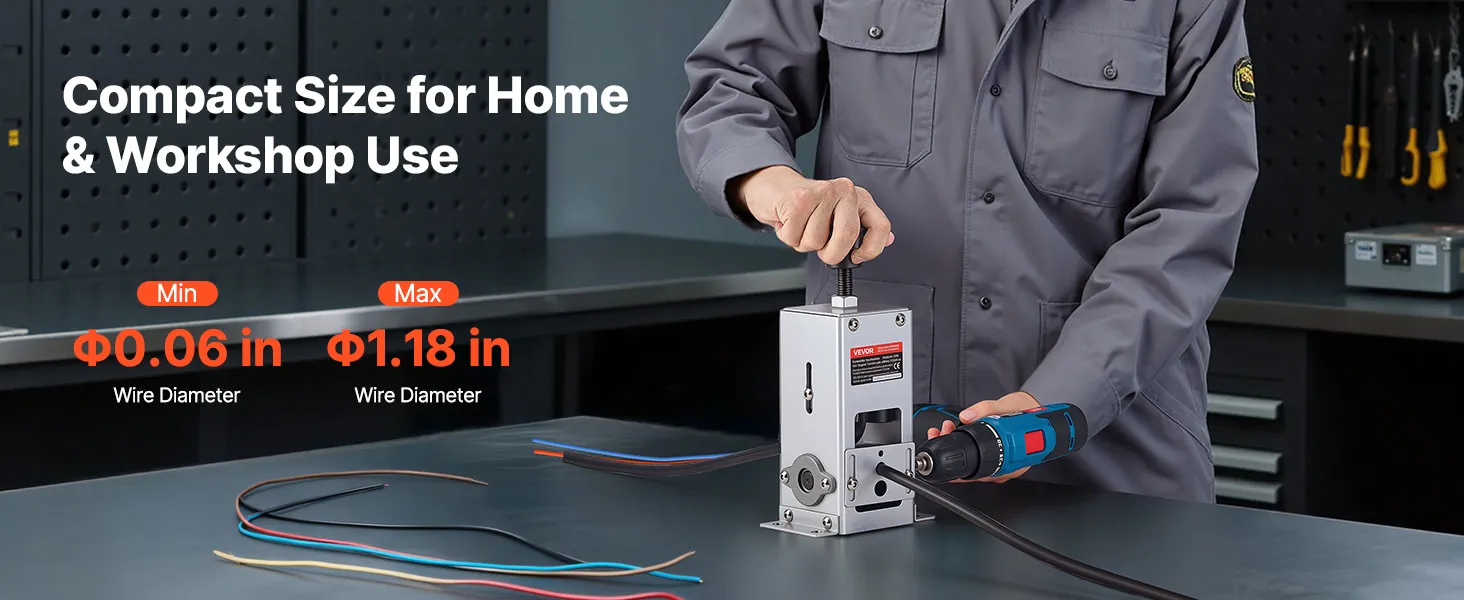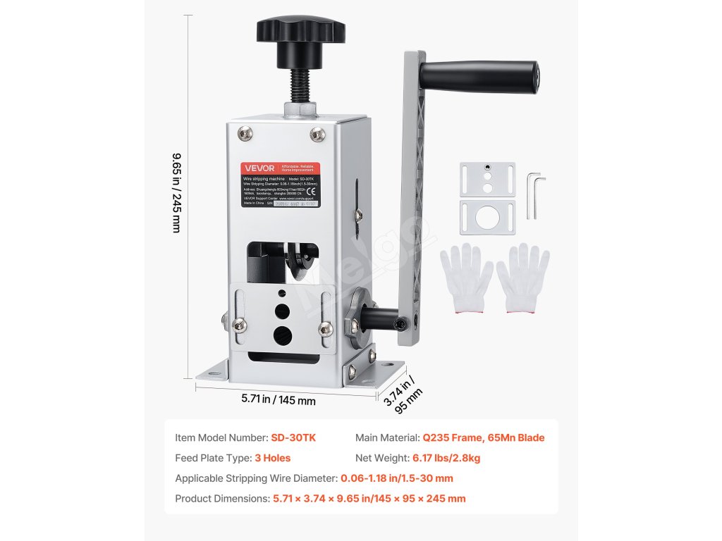 Tento stroj na odizolovanie drôtov je vhodný pre káble s priemerom 1,5-30 mm (Φ0,06-1,18 palca) a podporuje ručnú aj vŕtačkou poháňanú prevádzku. Poskytuje presné odizolovanie tenkých vodičov bez poškodenia medeného jadra. Ľahko sa používa a je vhodný pre začiatočníkov, je vybavený odolnou čepeľou pre dlhotrvajúci výkon.