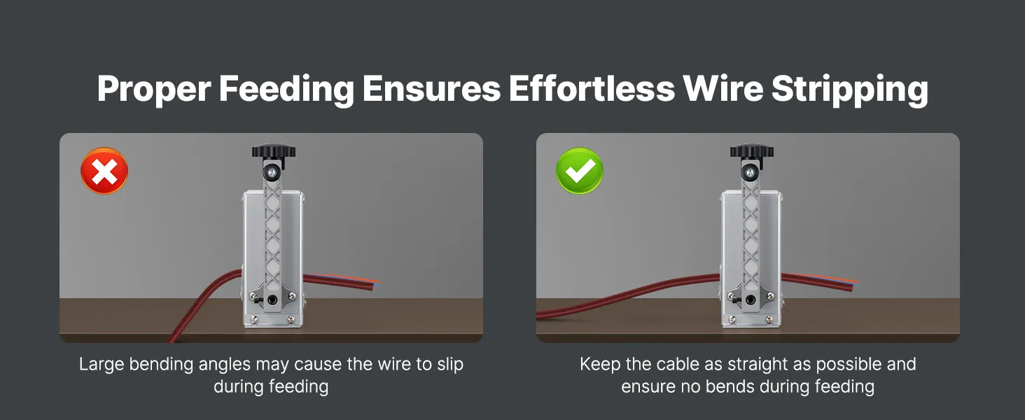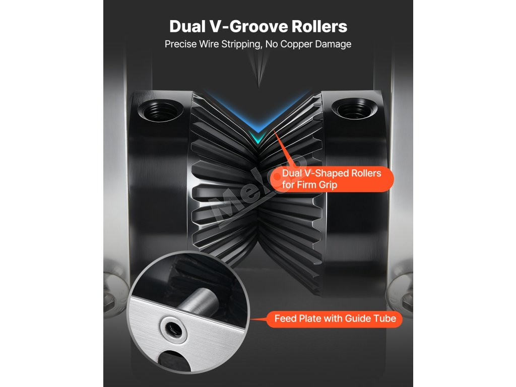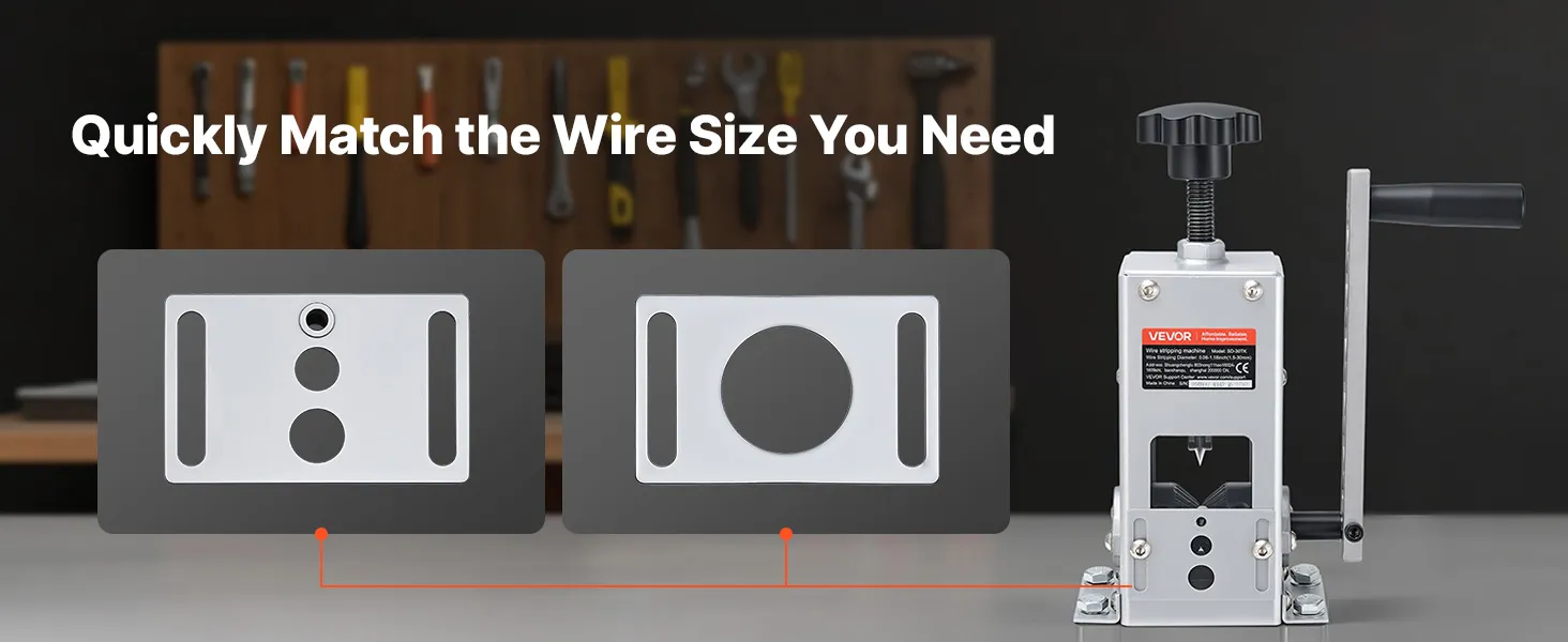 Náš ručný odizolovač drôtov je vybavený 2 podávacími platňami, ktoré rýchlo zodpovedajú rôznym priemerom drôtov na presné odizolovanie.