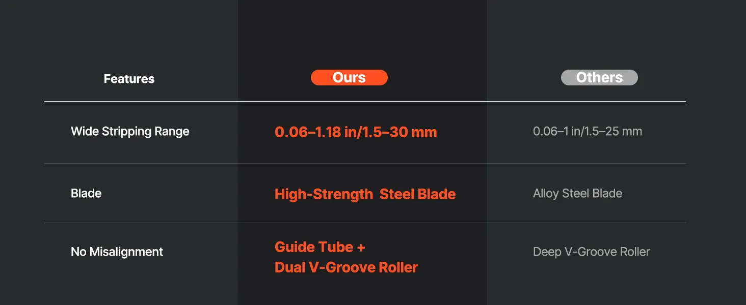 Náš ručný stroj na odizolovanie drôtov je vybavený nastavovacím gombíkom čepele na presné ovládanie hĺbky rezu, čo minimalizuje straty medi a zabezpečuje čistejšie výsledky.