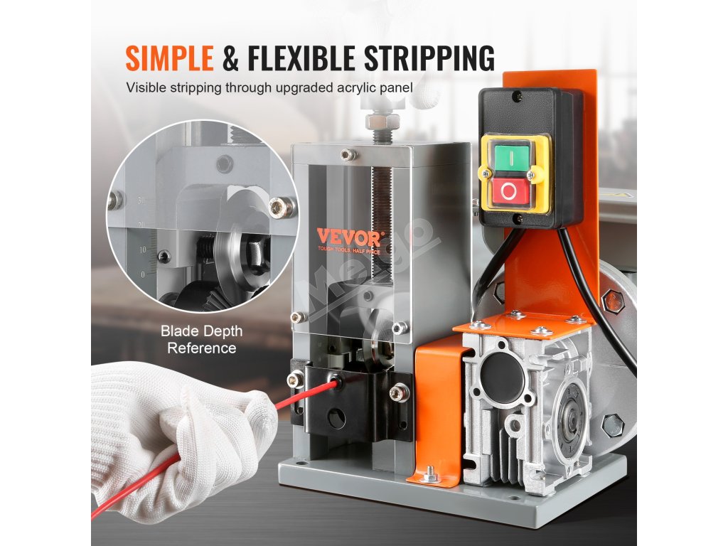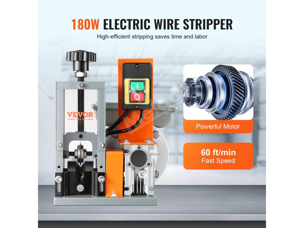 Automatický odizolovač káblov 1,5–30 mm, 180 W, 18,3 m/min, s hĺbkou