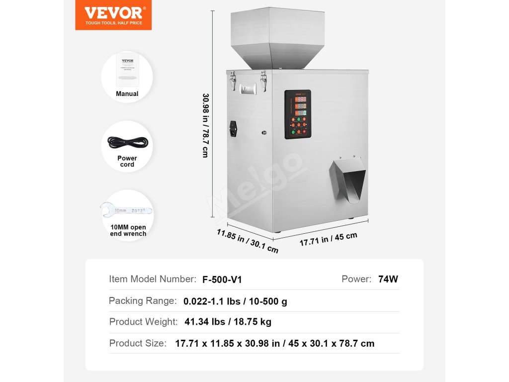 Automatická plnička prášku 0.022-1.1lbs/10-500g na prášky a zrná