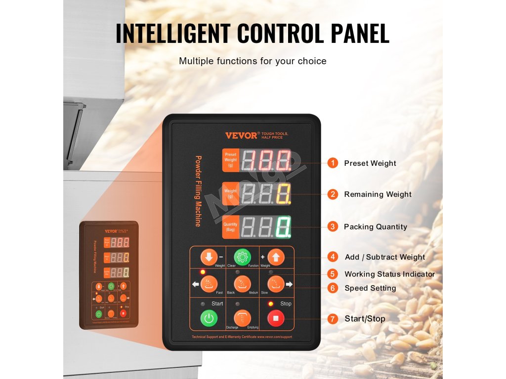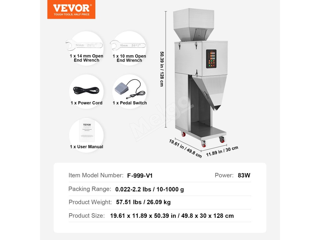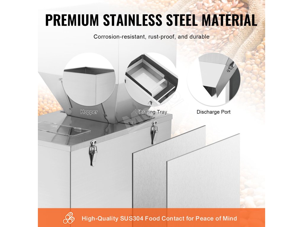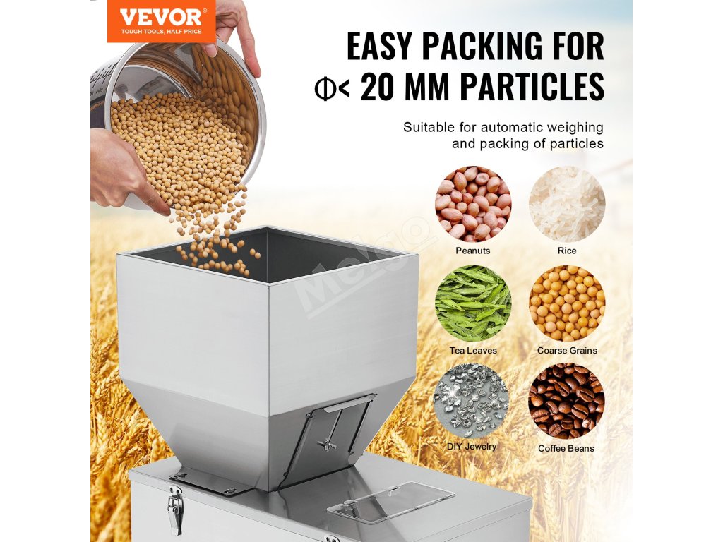 Automatická váhová plnička 0.022–2.2 lbs/10–1000 g, s pedálom, nerez