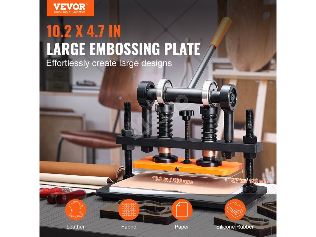 Ručný vysekávací a embosovací stroj na kožu 25.9×12 cm, zdvih 1.2 cm