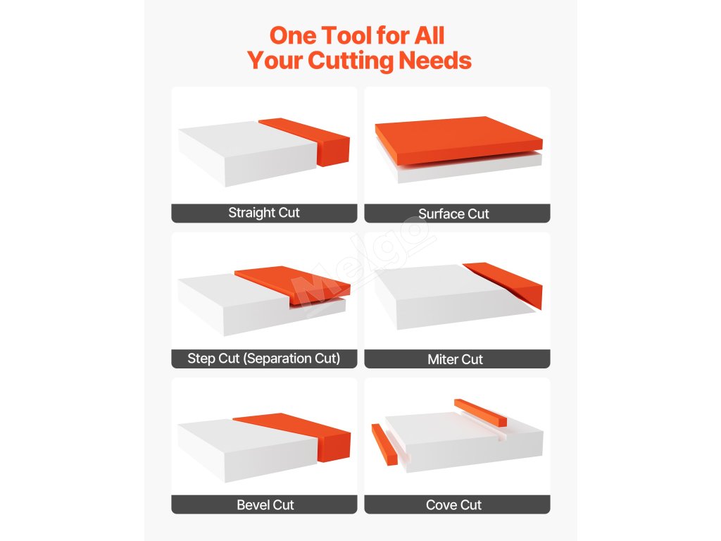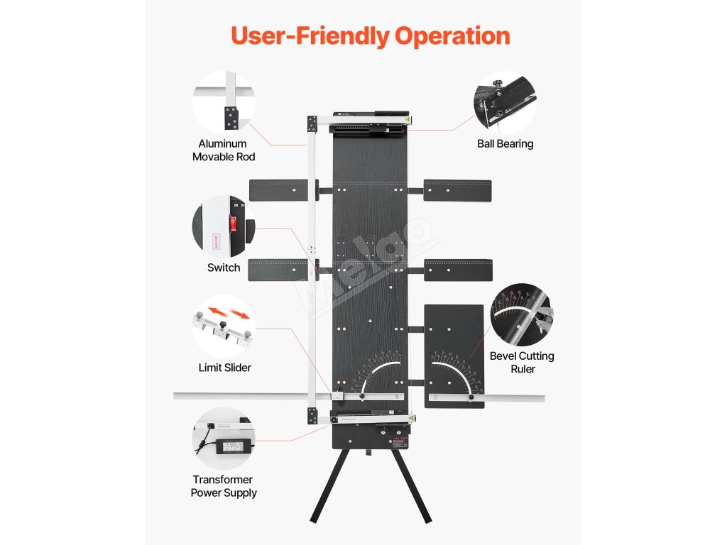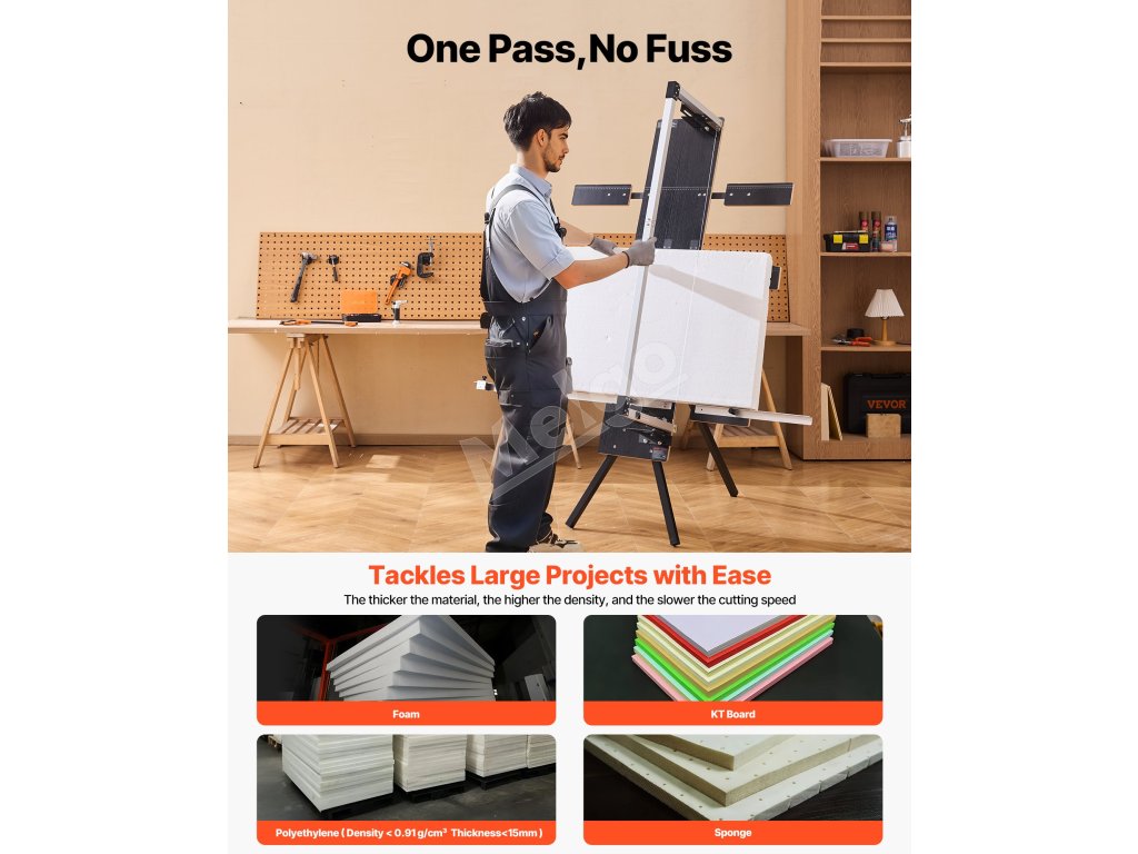 Vybavený predĺženými bočnými panelmi na zväčšenie pracovnej plochy, čo uľahčuje manipuláciu s veľkými penovými doskami s väčšou stabilitou a presnosťou.