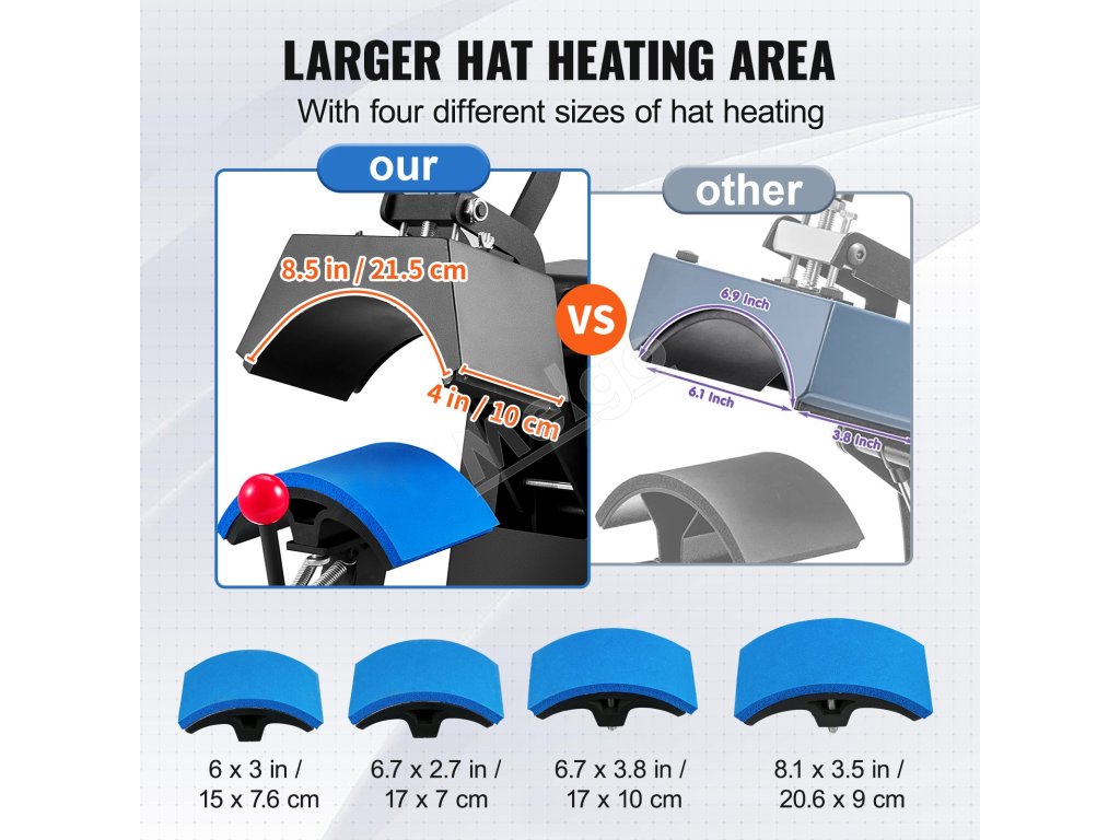 Chcete nosiť klobúk s jedinečnými vzormi? Tento tepelný lis na klobúky dokáže pomocou sublimácie preniesť krásne obrázky, ktoré sa vám páčia, na čiapky, ktoré môžete nosiť denne alebo ich zabaliť ako darčeky pre svoju rodinu a priateľov. na rôzne štýly klobúkov možno použiť 4 rôzne veľkosti podložiek.