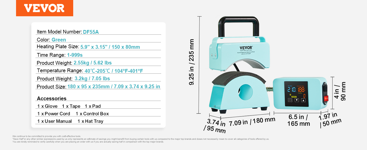| Veľkosť vykurovacej dosky | 5.9" x 3,15" / 150 x 80 mm |