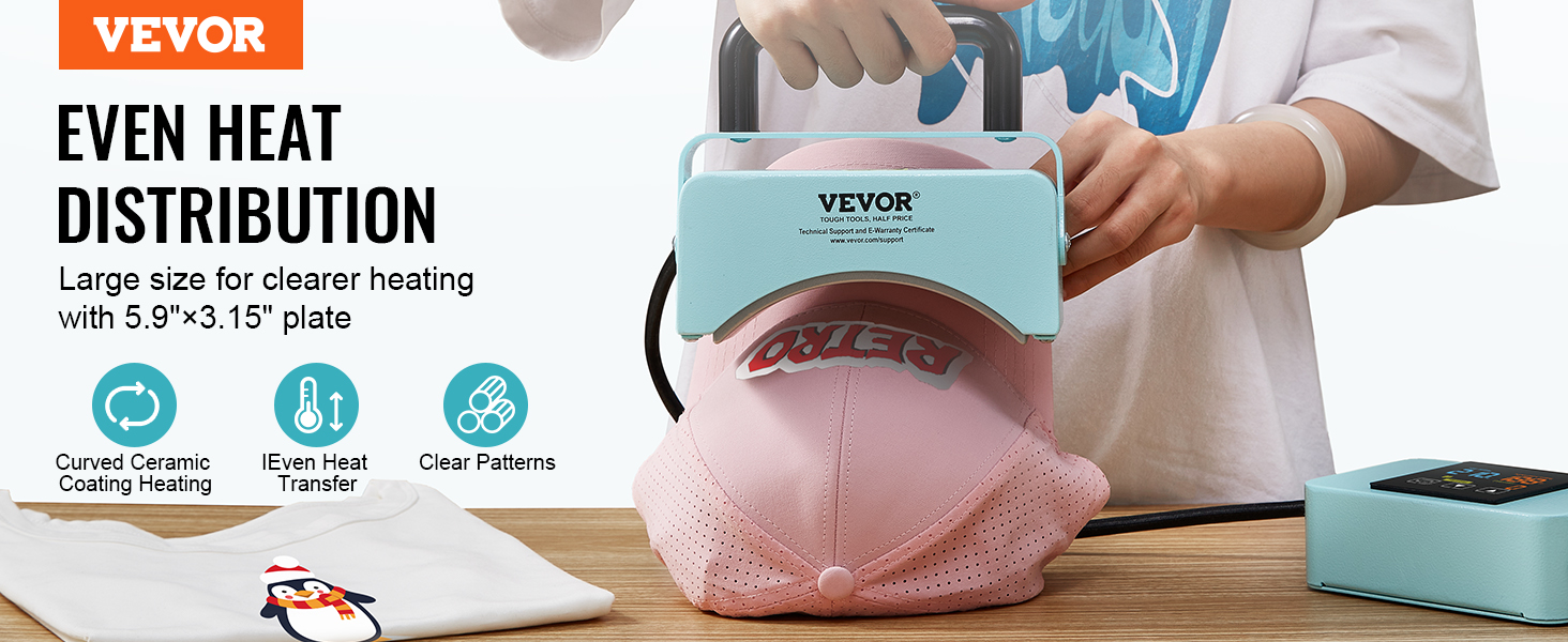 Ľahko si vytvoríte personalizované čiapky. Náš lis na klobúky je vybavený zakriveným vyhrievacím prvkom s keramickým povlakom, ktorý sa prispôsobuje tvaru čiapky a zabezpečuje rovnomerný prenos tepla a ostrú čistotu vzoru.