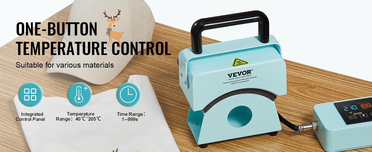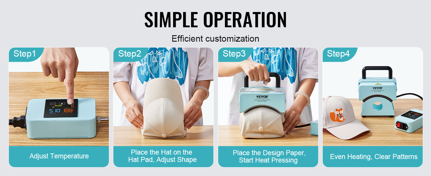 Široké nastavenie teploty sa prispôsobí rôznym materiálom. Tepelný lis na klobúky si ľahko poradí s rôznymi čiapkami od nízkeho po vysoké nastavenie teploty pomocou nastavenia jedným tlačidlom na presné lisovanie.