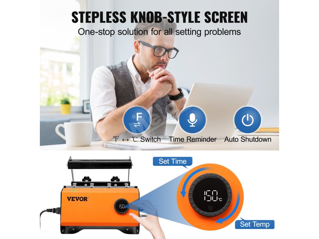 Náš stroj na tepelné lisovanie hrnčekov automaticky zapípa na konci odpočítavania časovača alebo po dosiahnutí nastavenej teploty, čím používateľom pripomenie, aby hrnčeky vybrali. Tento sublimačný tepelný lis na hrnčeky je premyslenejší a praktickejší, aby sa zabránilo popáleninám.