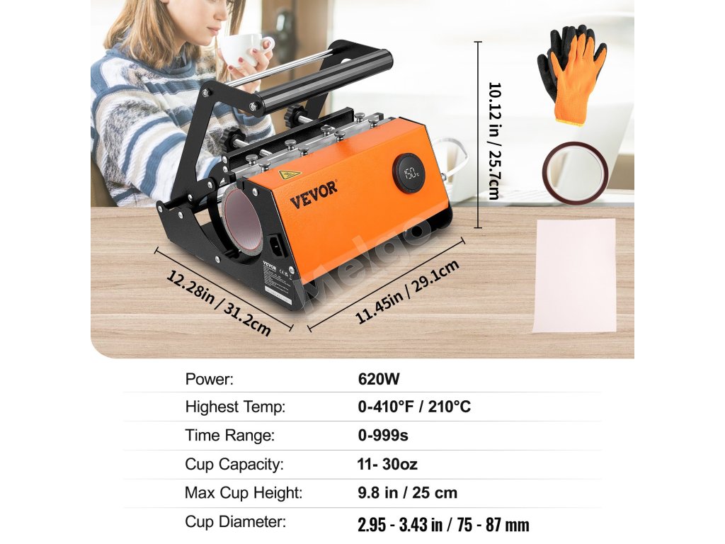 Stroj na potlač tumblerov a hrnčekov 311.84–850.5 g, s rukavicami