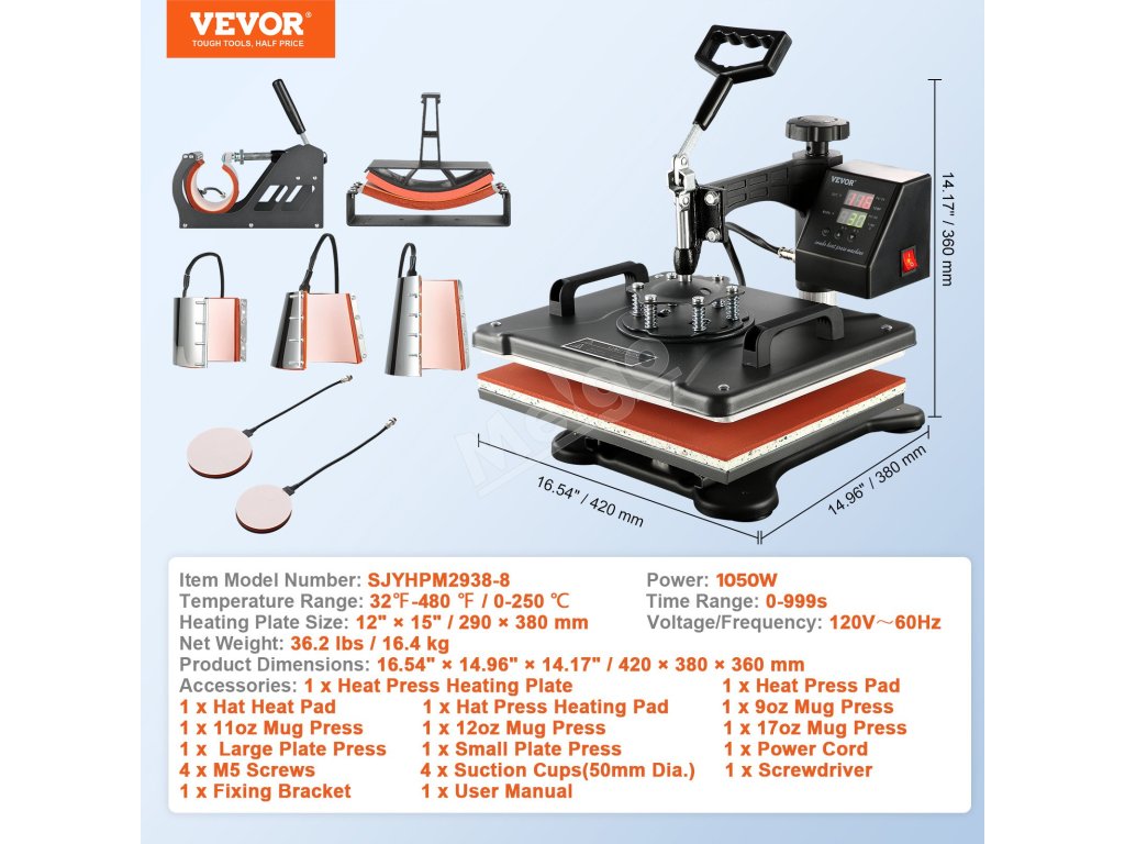 Tepelný lis 8 v 1 38×30cm na tričká, hrnčeky, čiapky a platne