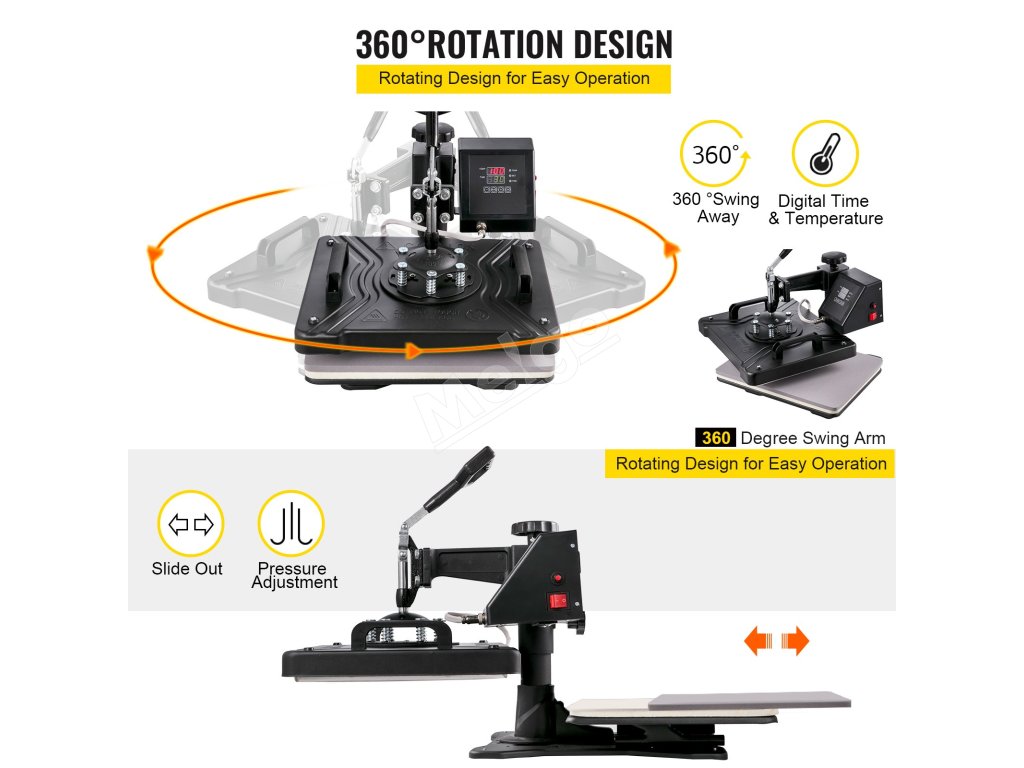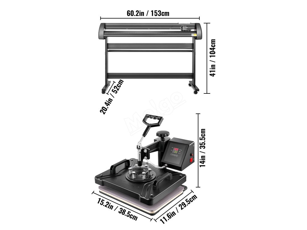 Táto kompletná súprava sa skladá z dvoch profesionálnych zariadení, konkrétne z rezačky vinylu a multifunkčného tepelného lisu. 53" rezací plotter vám umožňuje vyrezávať prispôsobené vzory a značky podľa vašich predstáv. tepelný lis 5 v 1 je ideálny na prenos týchto personalizovaných obrázkov na tričká, hrnčeky, čiapky atď.