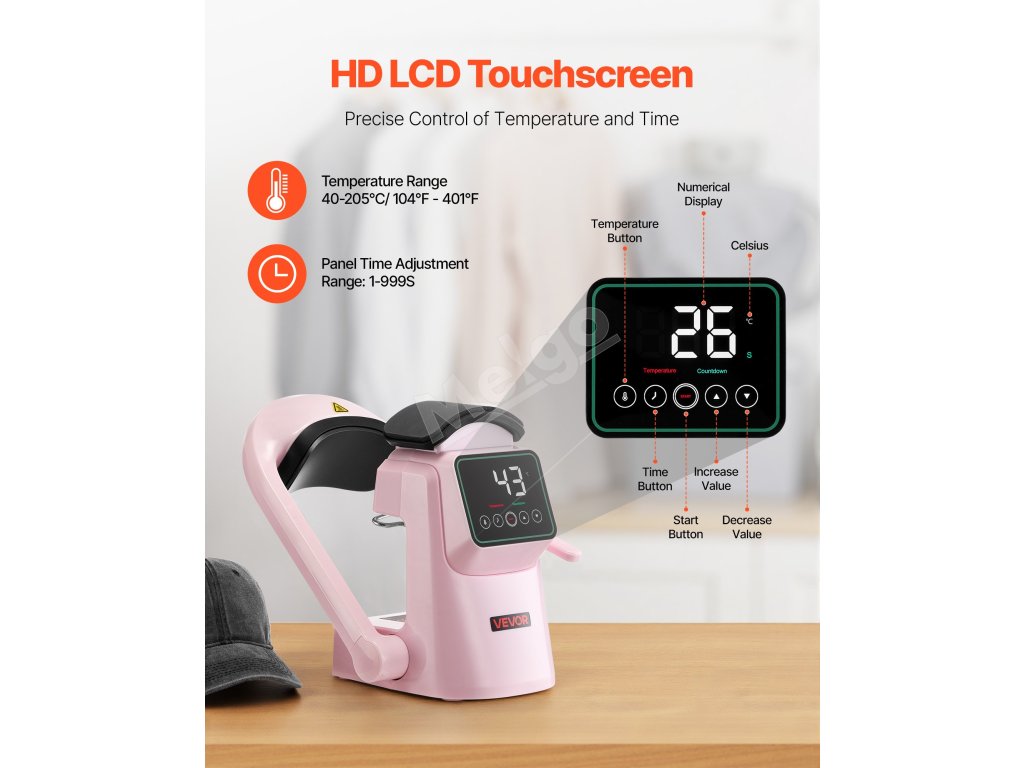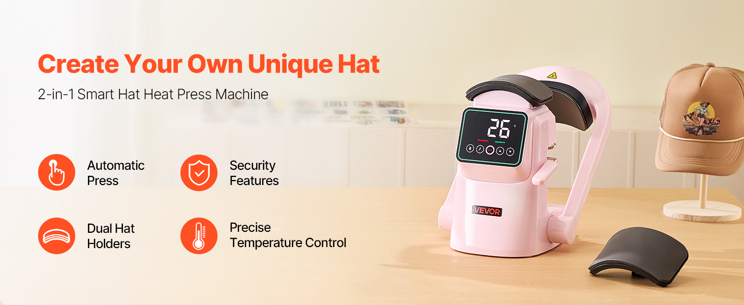 Tento automatický tepelný lis na klobúky, ktorý kombinuje automatické lisovanie a presnú reguláciu teploty, zabezpečuje rovnomerné rozloženie tepla pre ideálne transfery. Dve platne na klobúky sa prispôsobia rôznym veľkostiam klobúkov a viacero bezpečnostných funkcií zabezpečuje jednoduché ovládanie, takže si ich môžete bez obáv prispôsobiť.