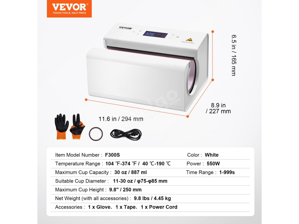 Automatický lis na sublimáciu termohrnčekov 311.8-850.5 g biely
