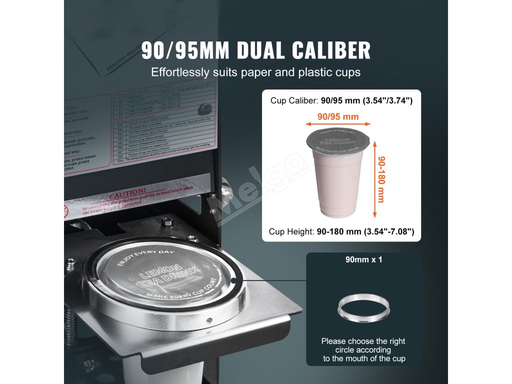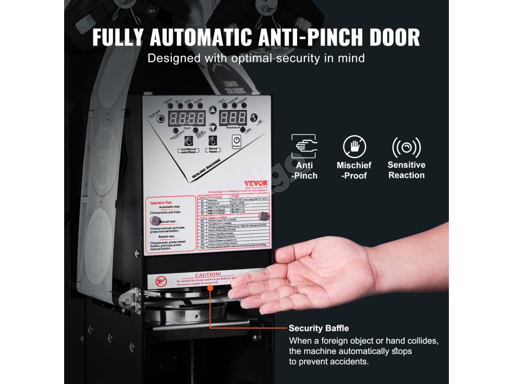 Už žiadne problémy s rôznymi veľkosťami pohárov! Náš stroj na uzatváranie pohárov je vybavený automatickým zdvíhacím držiakom pohárov, ktorý hladko manipuluje s pohármi s výškou od 9 do 18 cm.