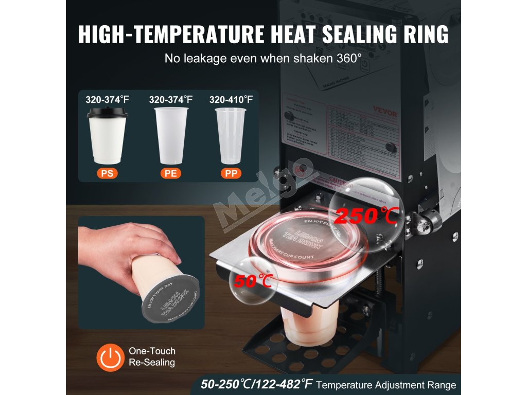 Náš stroj na zapečatenie pohárov dokáže zapečatiť poháre do 5 sekúnd a automaticky zvládne všetko od podávania pohárov až po navíjanie fólie, zapečatenie a vyhadzovanie pohárov. S kapacitou 500-650 pohárov za hodinu bez problémov zvládne vysokú návštevnosť zákazníkov.