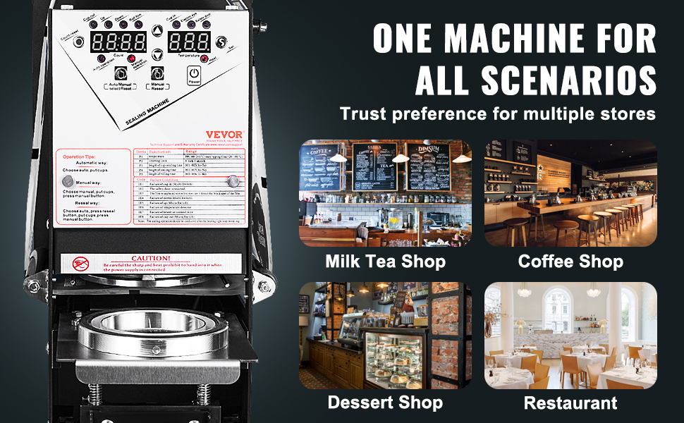 Náš plne automatický stroj na zapečatenie pohárov na boba je majstrom multitaskingu. Nech už prevádzkujete reštauráciu, obchod s mliečnym čajom, kaviarňu, cukráreň alebo snack bar, tento stroj vám pokryje všetky potreby. Je to skutočne vaša voľba č. 1.