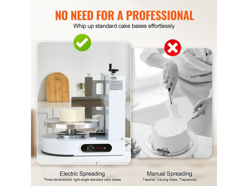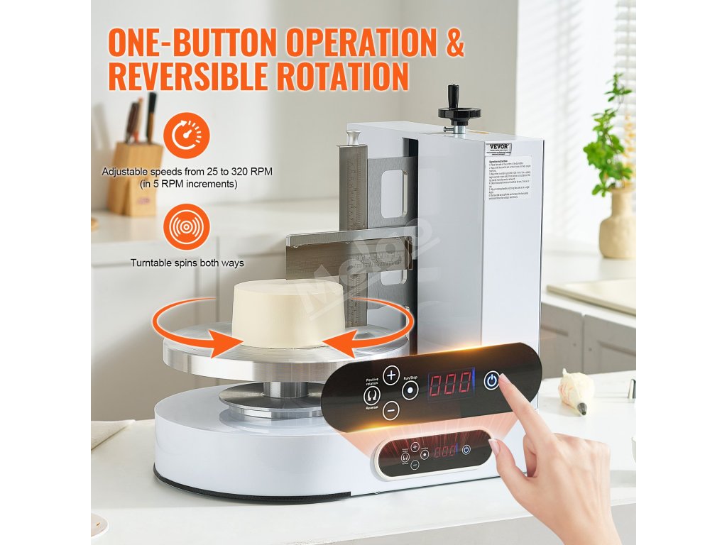 S týmto strojom na zdobenie tort premeníte svoje skúsenosti s pečením. Vďaka rýchlemu a presnému rozotieraniu môže byť zdobenie torty hračkou. Je pripravený na to, aby ste mohli vytvárať nádherné torty špičkového štandardu. Stroj sa tiež ľahko čistí a nezanecháva žiadne zvyšky, čo výrazne zvyšuje efektivitu.