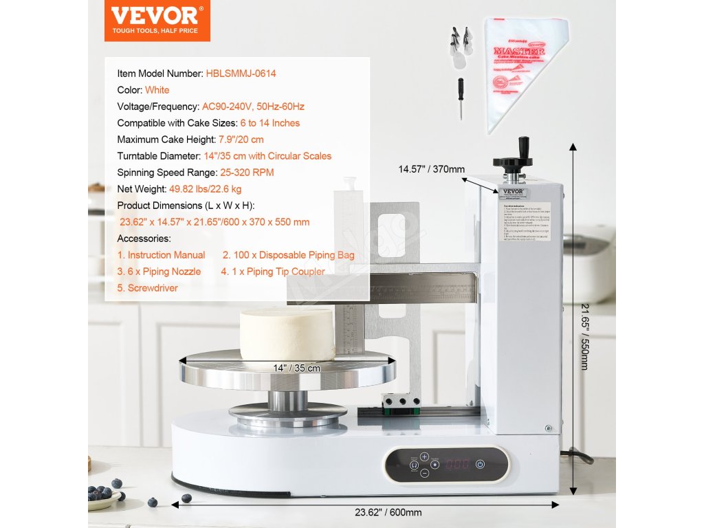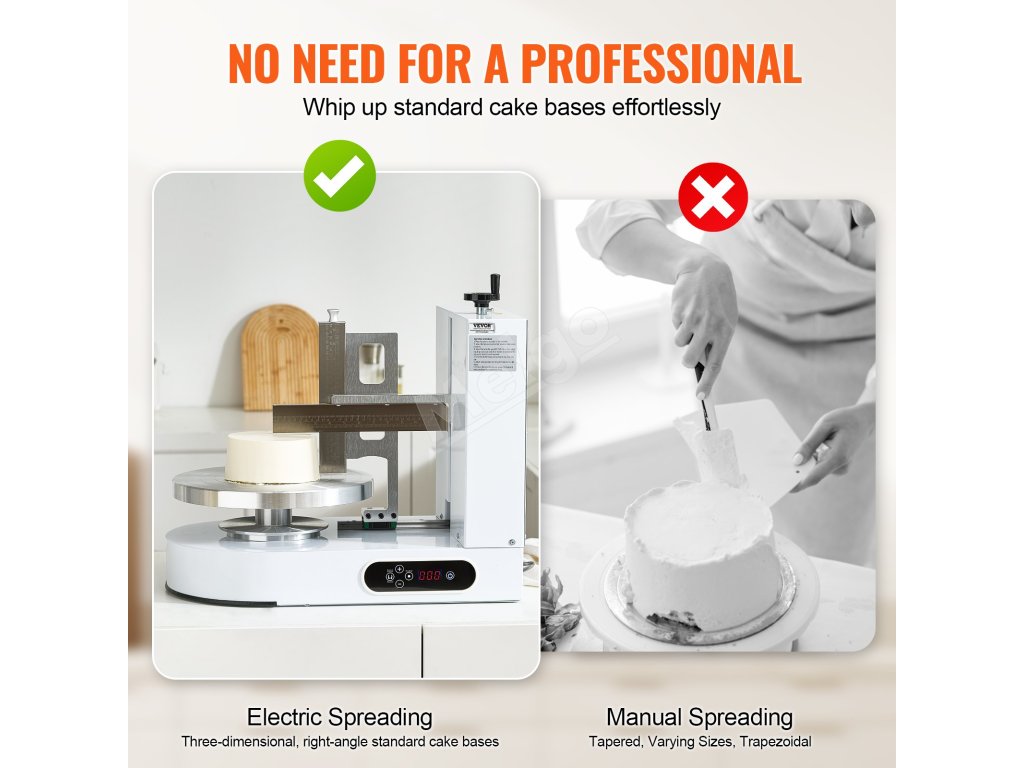 S týmto strojom na zdobenie tort premeníte svoje skúsenosti s pečením. Vďaka rýchlemu a presnému rozotieraniu môže byť zdobenie torty hračkou. Je pripravený na to, aby ste mohli vytvárať nádherné torty špičkového štandardu. Stroj sa tiež ľahko čistí a nezanecháva žiadne zvyšky, čo výrazne zvyšuje efektivitu.