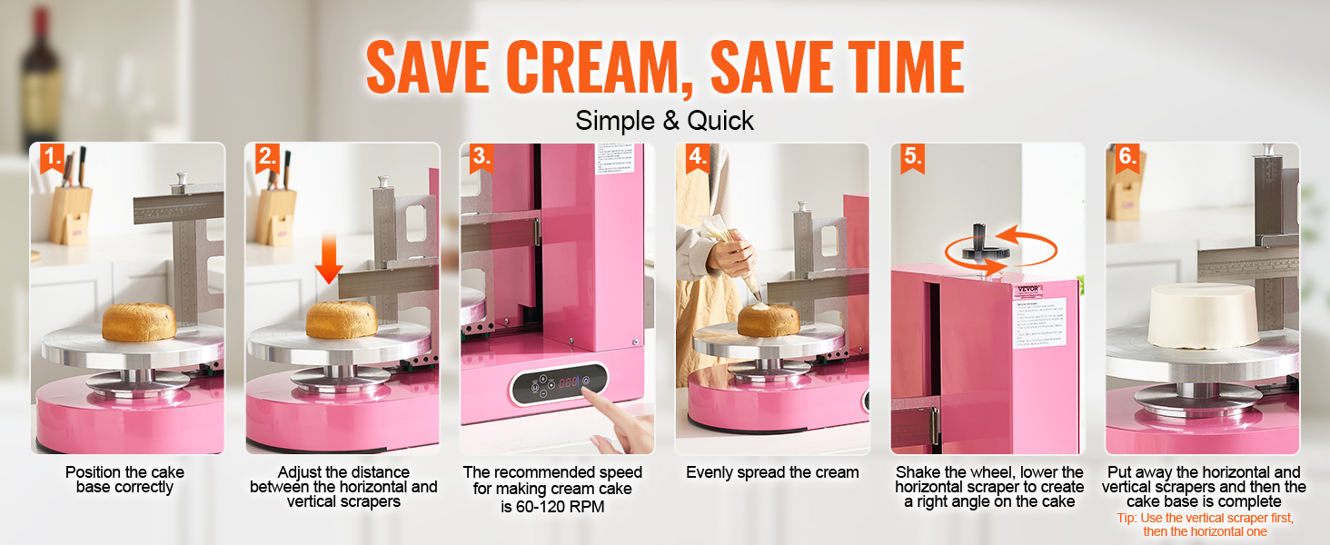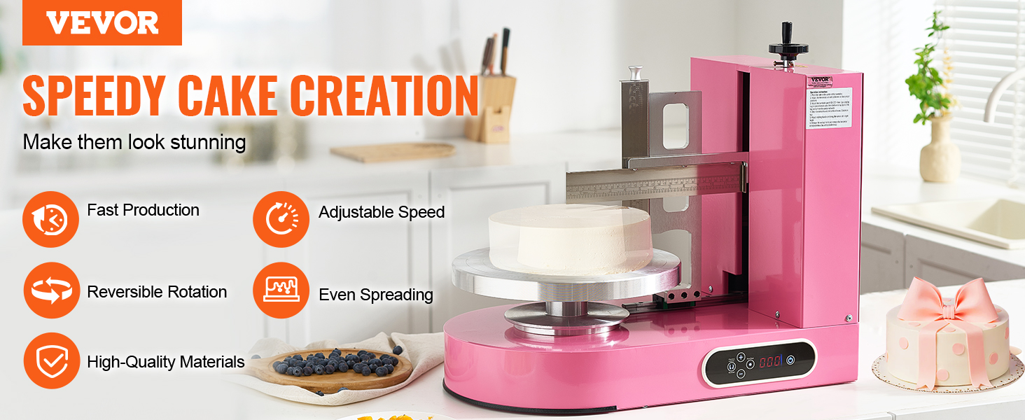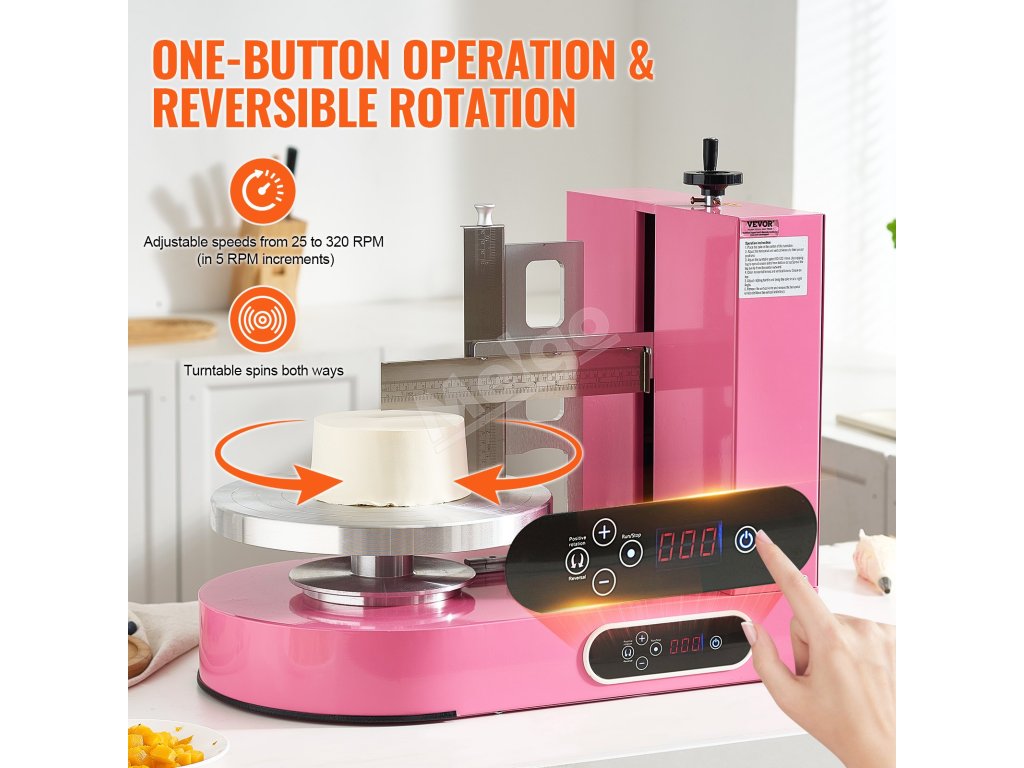 S týmto strojom na zdobenie tort premeníte svoje skúsenosti s pečením. Vďaka rýchlemu a presnému rozotieraniu môže byť zdobenie torty hračkou. Je pripravený na to, aby ste mohli vytvárať nádherné torty špičkového štandardu. Stroj sa tiež ľahko čistí a nezanecháva žiadne zvyšky, čo výrazne zvyšuje efektivitu.