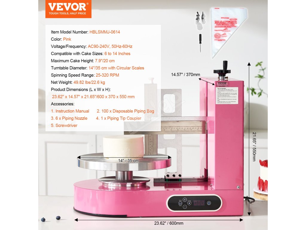 Stroj na zdobenie tort s nastaviteľnou stierkou, 6"–14", 25–320 RPM