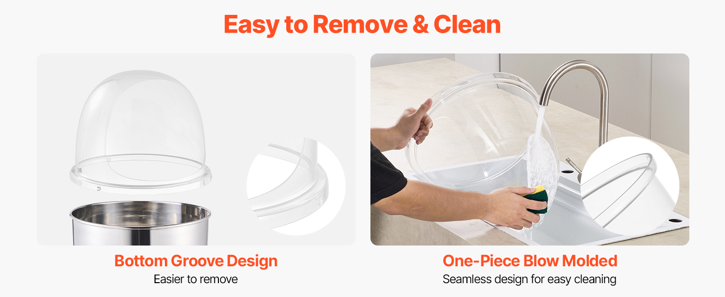 Táto kupola na cukrovú vatu je navrhnutá s praktickou drážkou na základni a dá sa rýchlo oddeliť na jednoduché umývanie. Hladký, jednodielny povrch nezanecháva žiadne zradné rohy, čo vám pomôže udržať priestor na výrobu cukroviniek bez škvŕn a zakaždým uľahčí čistenie po použití.