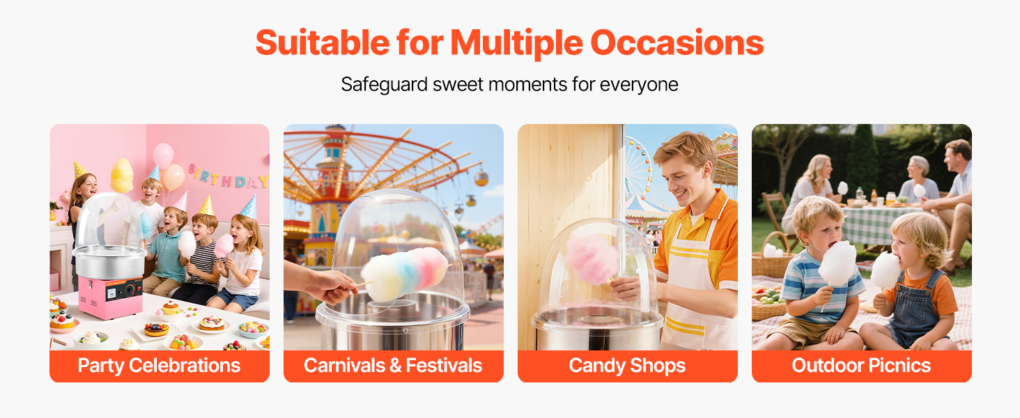 Štít na cukrovú vatu VEVOR sa ideálne hodí k vášmu výrobníku cukroviniek a hodí sa do širokej škály prostredí - na narodeninové oslavy, sviatočné podujatia, stretnutia na dvore alebo výstavy v obchode. Prináša pohodlie a čistotu pri každej príležitosti na výrobu sladkostí, kdekoľvek vytvoríte zábavu.