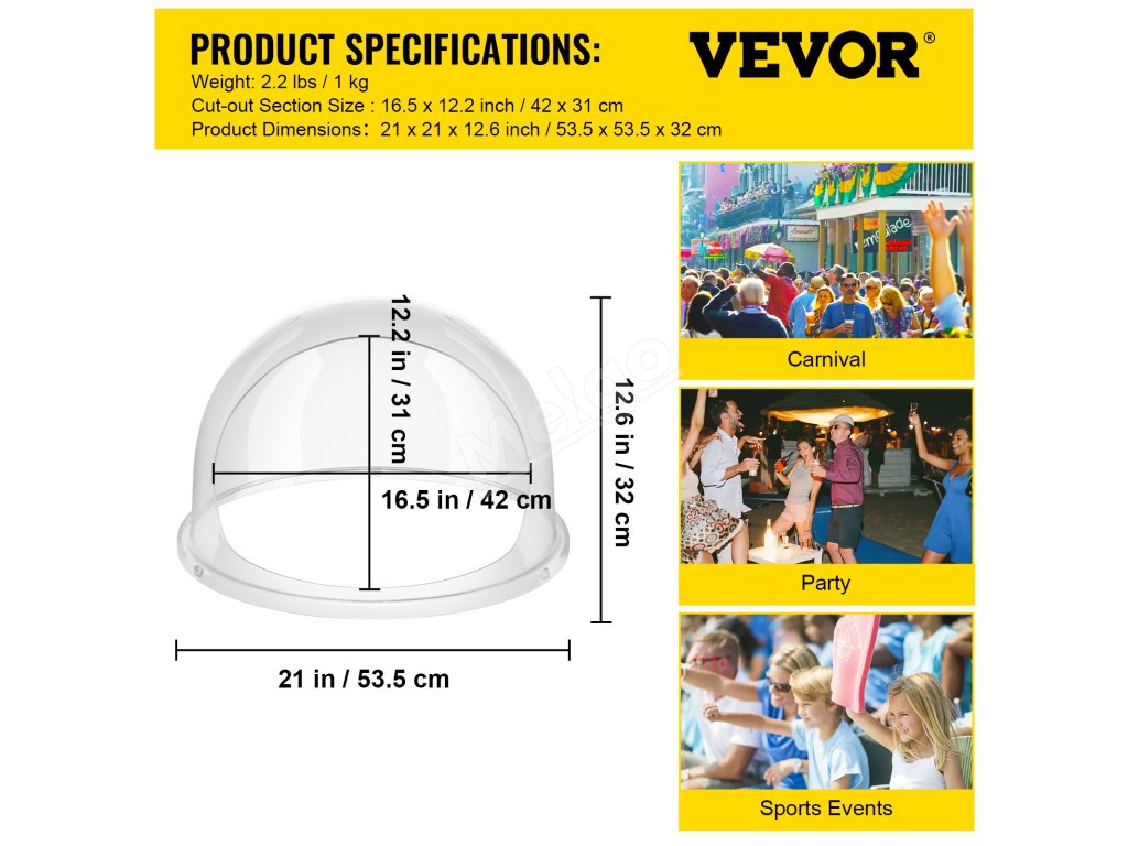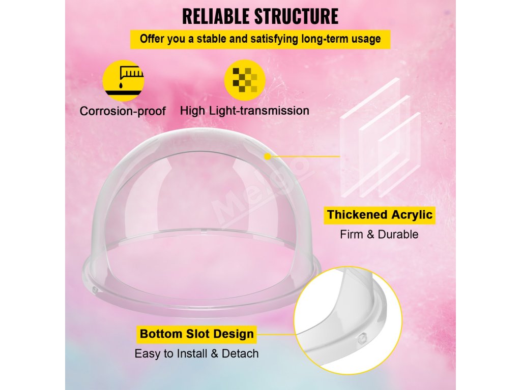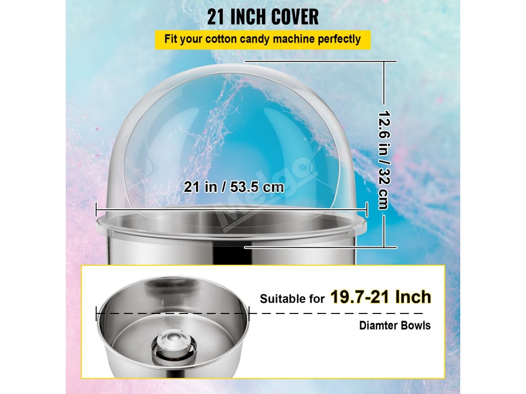 - Primeraná veľkosť: Táto horná kupola s priemerom 21 palcov má ideálny priemer pre väčšinu strojov na cukrovú vatu s priemerom misky približne 19,7 - 21 palcov.