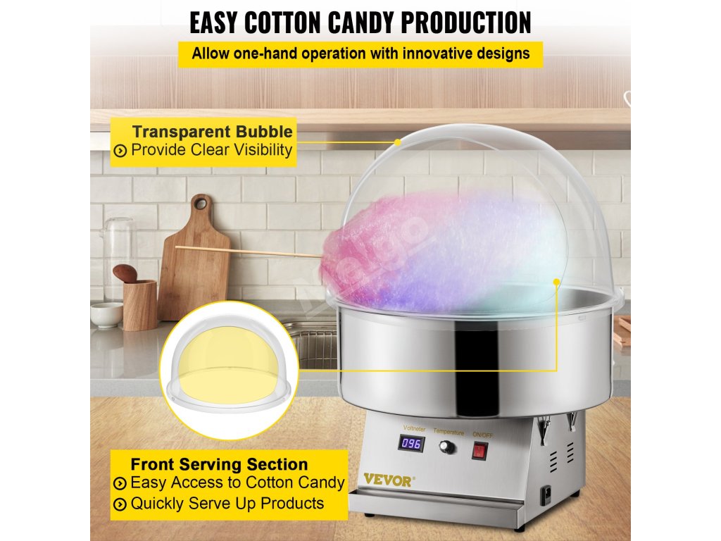 - Jednoduchý prístup privýrobe cukrovej vaty a úplná ochrana pre vás