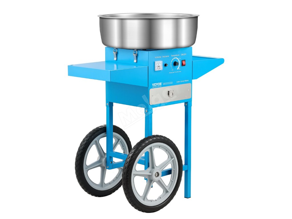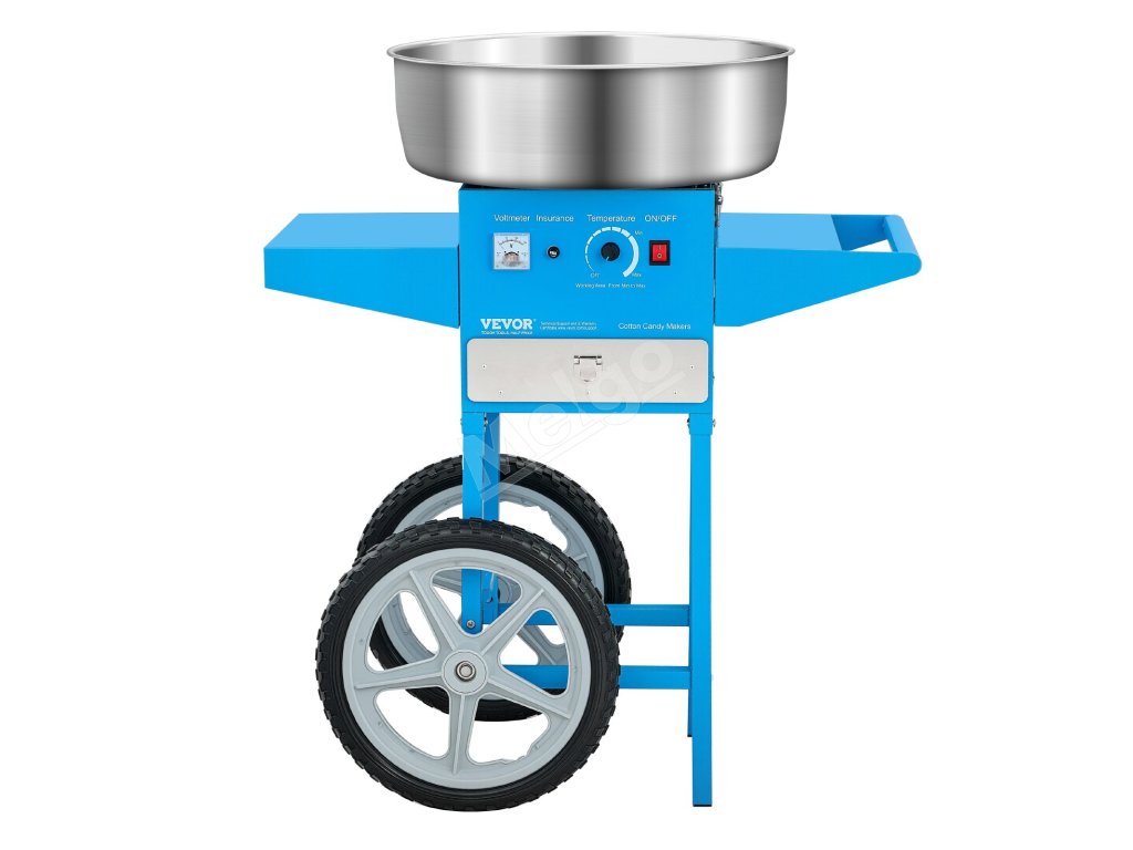Stroj na cukrovú vatu 1000 W so 52 cm nerezovou miskou a vozíkom