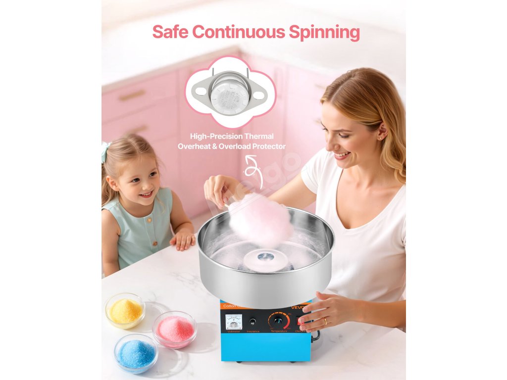 Kompaktný elektrický výrobník cukrovej vaty Magic - premeňte rodinné chvíle na sladké spomienky! Je pripravený na párty, je to kľúč k radosti bez námahy - všade tam, kde sa podávajú úsmevy!