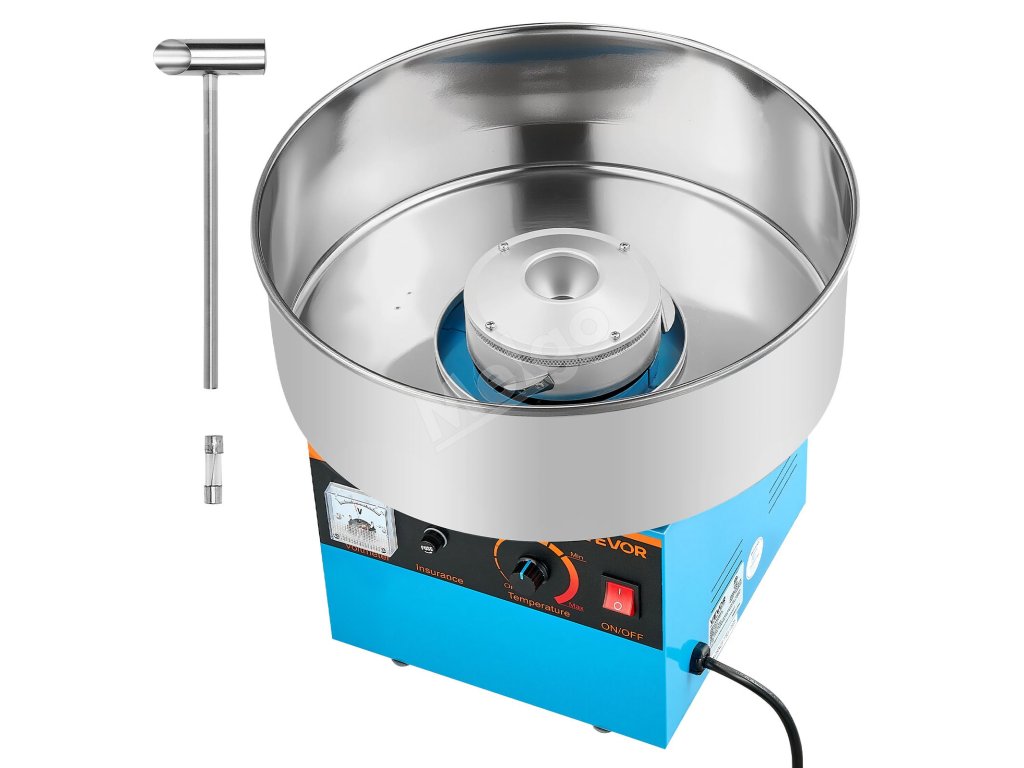 Stroj na cukrovú vatu 1000W, 38cm nerez miska, lopatka, modrý