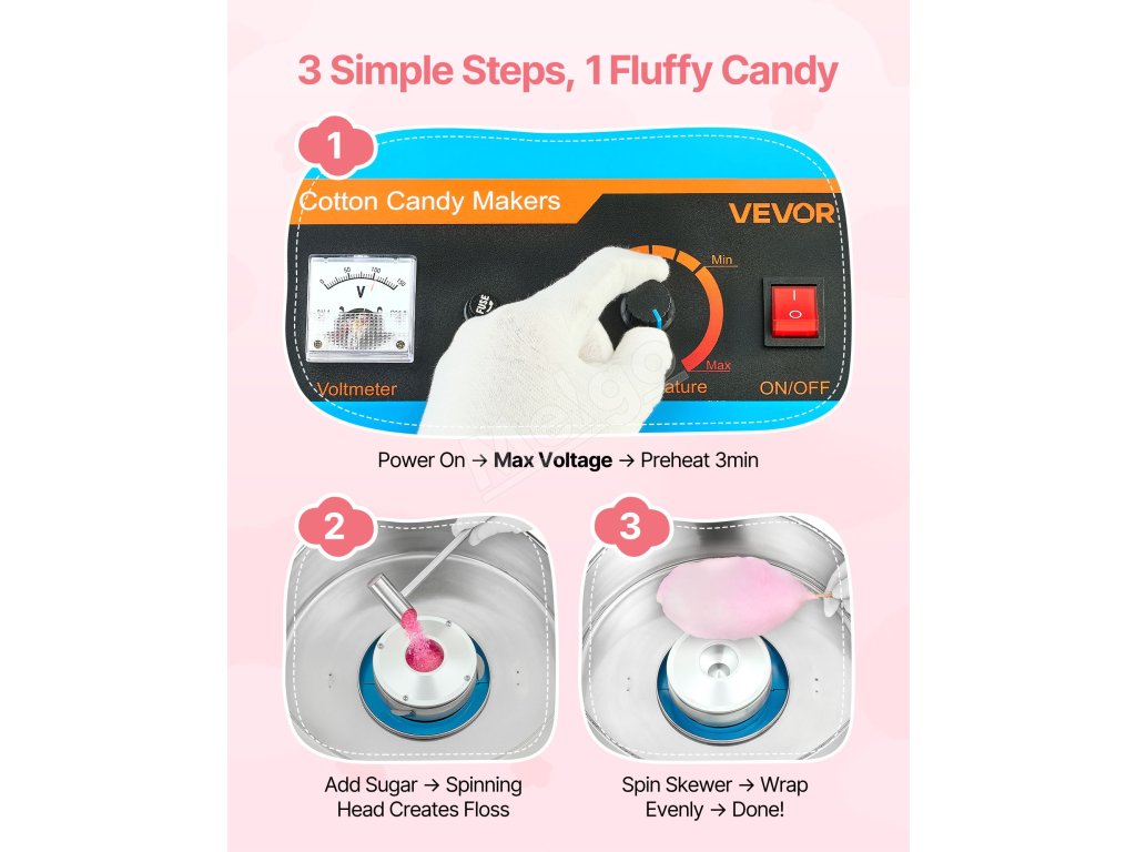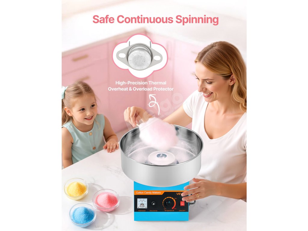 Kompaktný elektrický výrobník cukrovej vaty Magic - premeňte rodinné chvíle na sladké spomienky! Je pripravený na párty, je to kľúč k radosti bez námahy - všade tam, kde sa podávajú úsmevy!