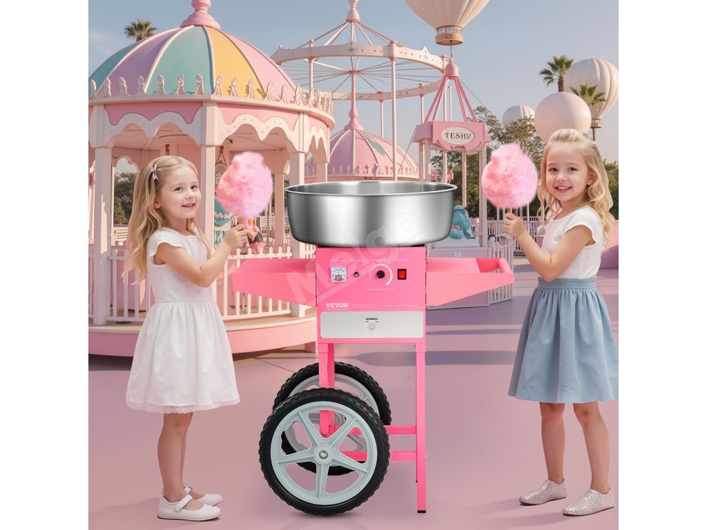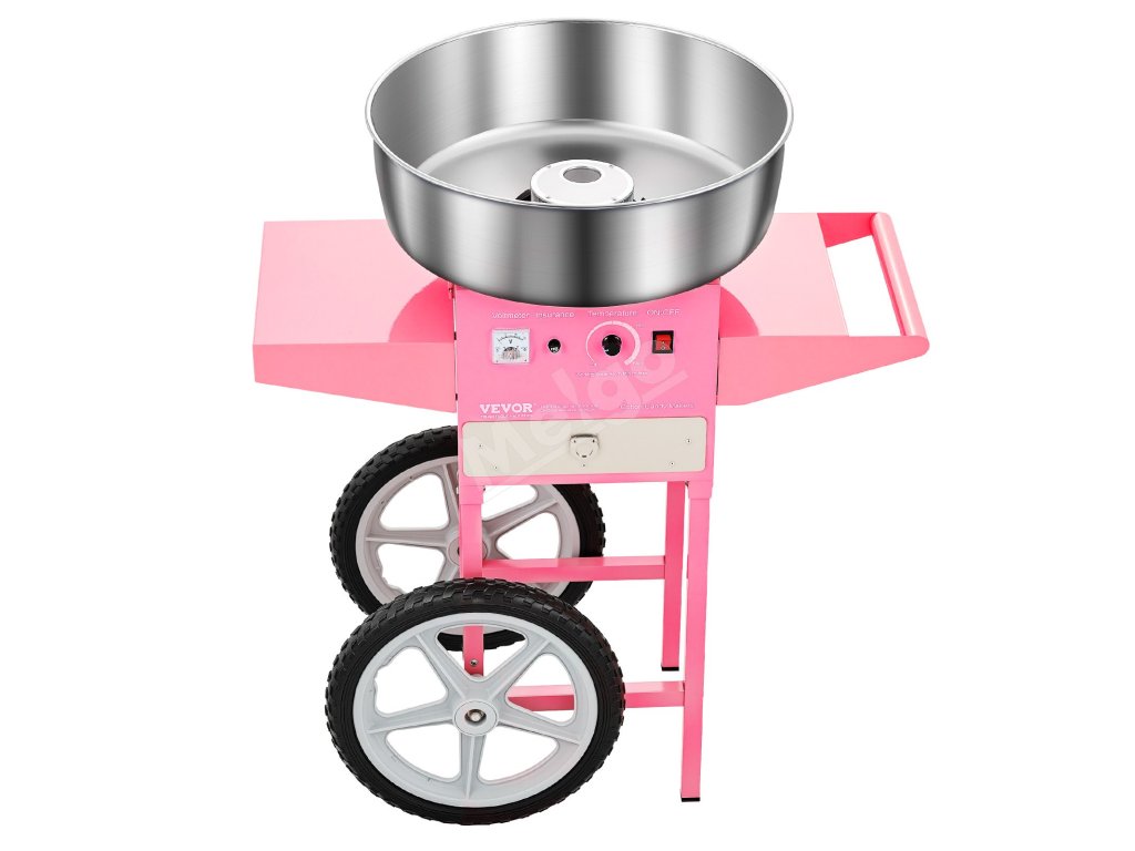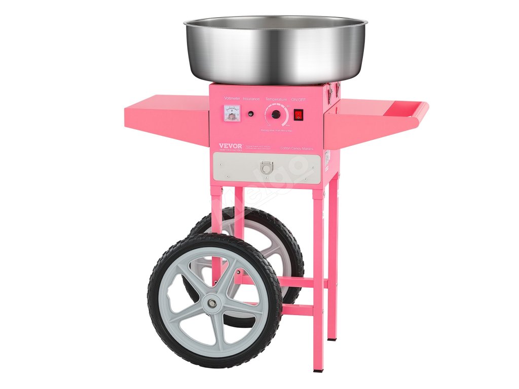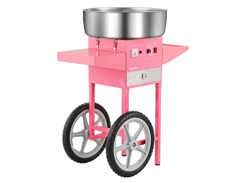Stroj na cukrovú vatu s vozíkom 1000W, miska 52cm nerez, zásuvka