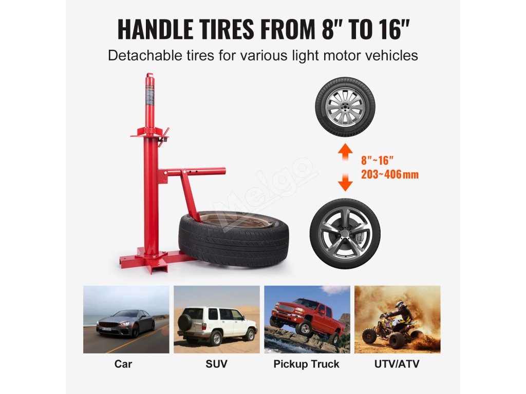 Náš menič pneumatík je navrhnutý tak, aby sa doň zmestili pneumatiky s rozmermi 8-16 palcov/203-406 mm. Je to ideálny nástroj pre rôzne vozidlá vrátane rodinných automobilov, SUV, pickupov, kosačiek na trávu, UTV/ATV a ďalších.