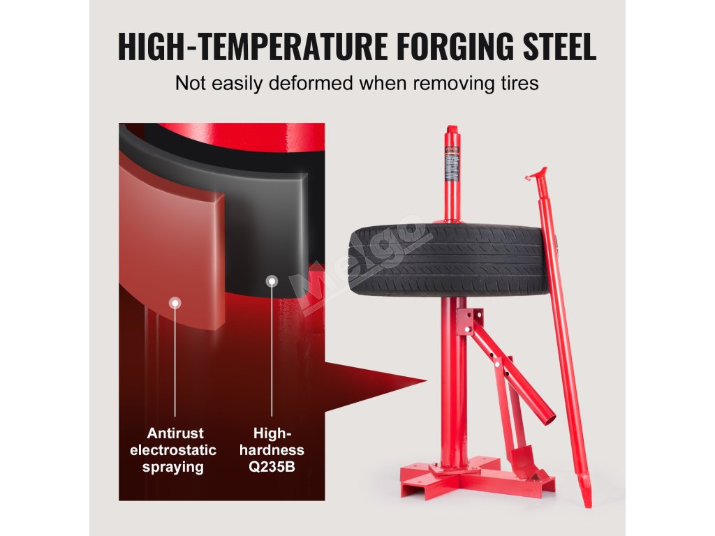 Náš ručný výmenník pneumatík je vyrobený z vysokoteplotnej kovanej ocele Q235B, čo zaručuje robustnú a pevnú konštrukciu, ktorá odoláva deformáciám a krehkosti. Povrch je upravený elektrostatickým nástrekom na zvýšenie odolnosti proti korózii a hrdzi.