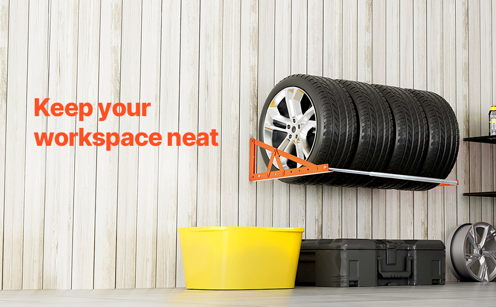 Namontujte pneumatiky na stenu a uvoľnite cenný priestor na podlahe, vďaka čomu bude vaša garáž alebo pracovný priestor čistejší a usporiadanejší.