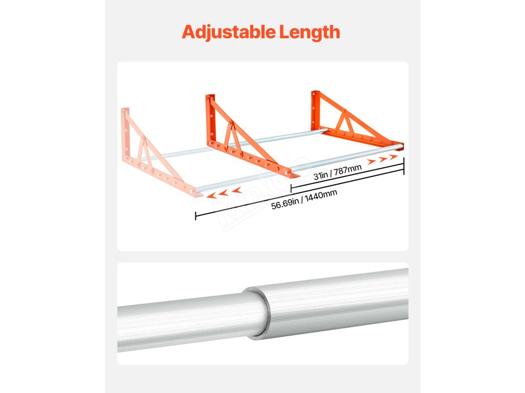 Tento nástenný stojan na pneumatiky sa jednoducho inštaluje. Stačí si vybrať požadované miesto a šírku, vyvŕtať otvory na príslušných miestach na stene a upevniť ho dodanými skrutkami. Podľa potreby môžete nastaviť dĺžku a premiestniť stojan, aby sa prispôsobil vašim potrebám.