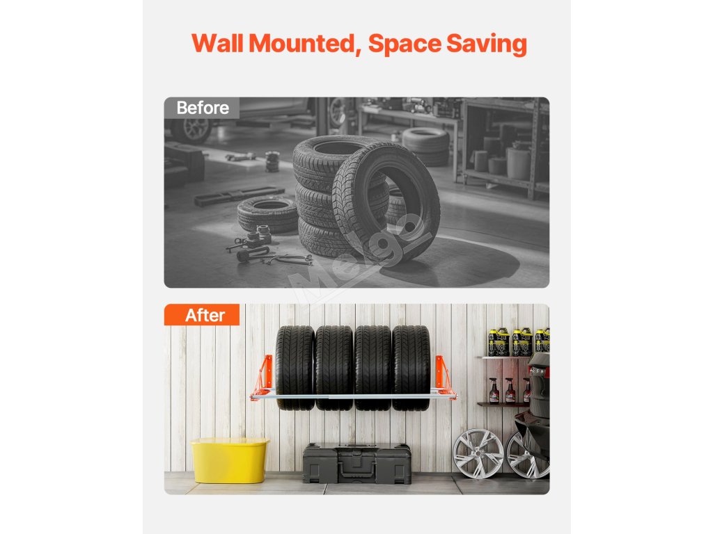 Namontujte pneumatiky na stenu a uvoľnite cenný priestor na podlahe, vďaka čomu bude vaša garáž alebo pracovný priestor čistejší a usporiadanejší.