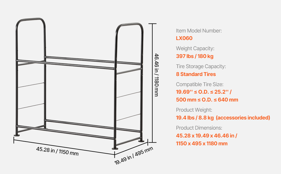 Tento regál na pneumatiky vyrobený z ocele Q195 s vysokou odolnosťou a práškovou povrchovou úpravou unesie až 397 lbs a ponúka výnimočnú trvanlivosť, odolnosť proti opotrebovaniu a ochranu proti korózii, čím zabezpečuje dlhodobé používanie.