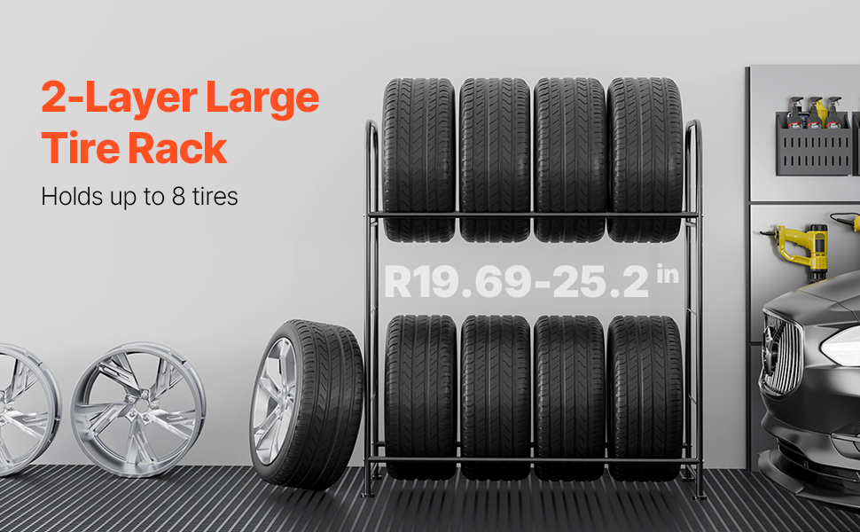 Tento 2-vrstvový stojan na pneumatiky s protiprachovým krytom pojme až 8 štandardných pneumatík, čím poskytuje dostatok úložného priestoru a zároveň udržiava vašu garáž organizovanú a priestorovo úspornú. Je vyrobený z odolnej ocele s vysokou pevnosťou a ponúka silnú nosnosť až 397 kg, pričom regály sú nastaviteľné pre rôzne veľkosti pneumatík.
